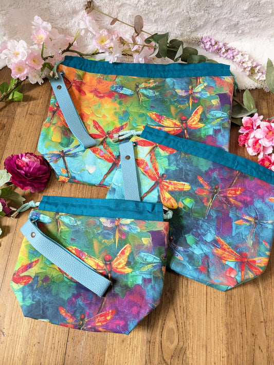 Sac à projet "Minis Sakura turquoise et bleu"