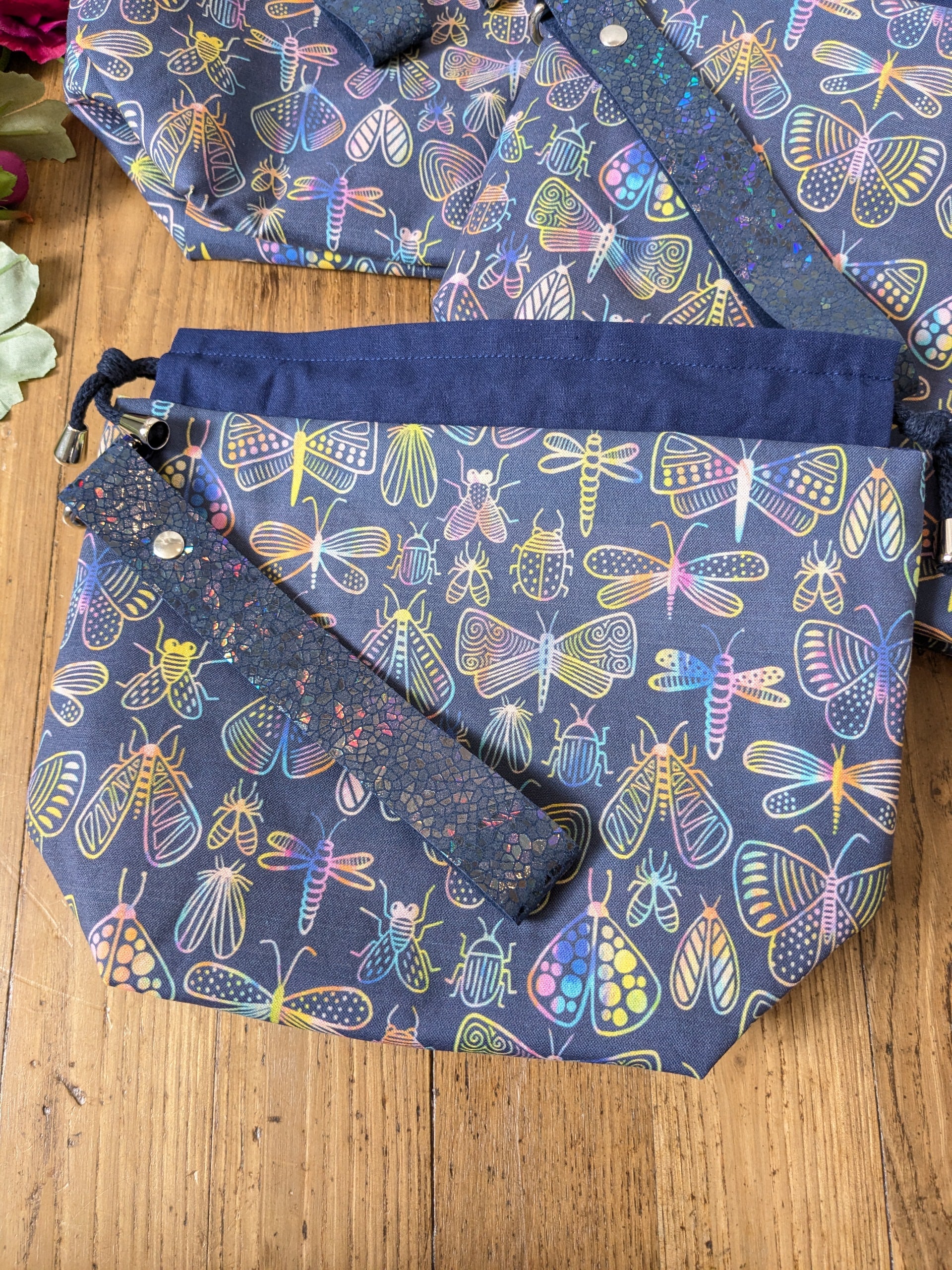 L'imprimé extérieur sera aussi celui des poches intérieures. Attention le placement des motifs varie d'un sac à l'autre donc votre sac à projet ne sera pas forcement parfaitement identique à ceux présentés en photo.